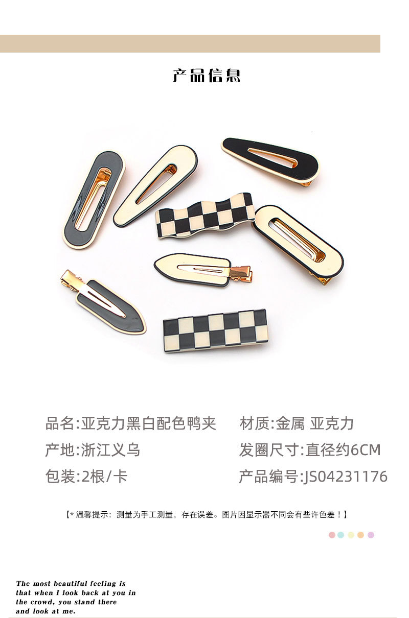 Black And White Checkerboard Hairpin Side Without Trace Haircard Girl Bangs Clip Duck Beak Clip Temperament Everything New Hair Accessories
