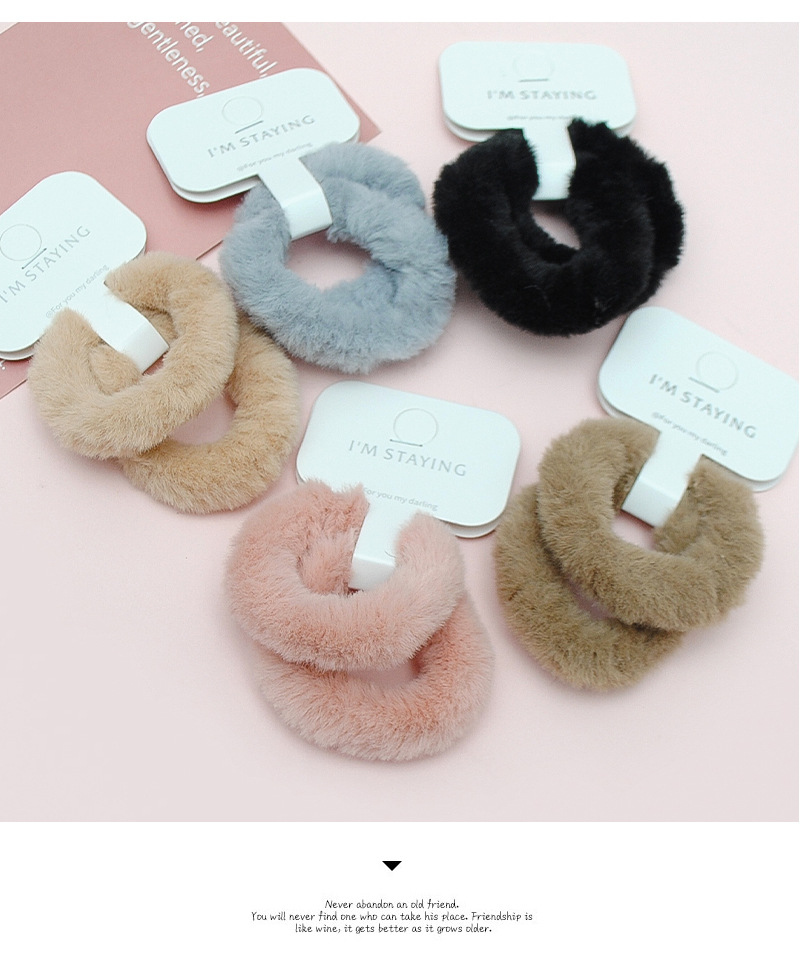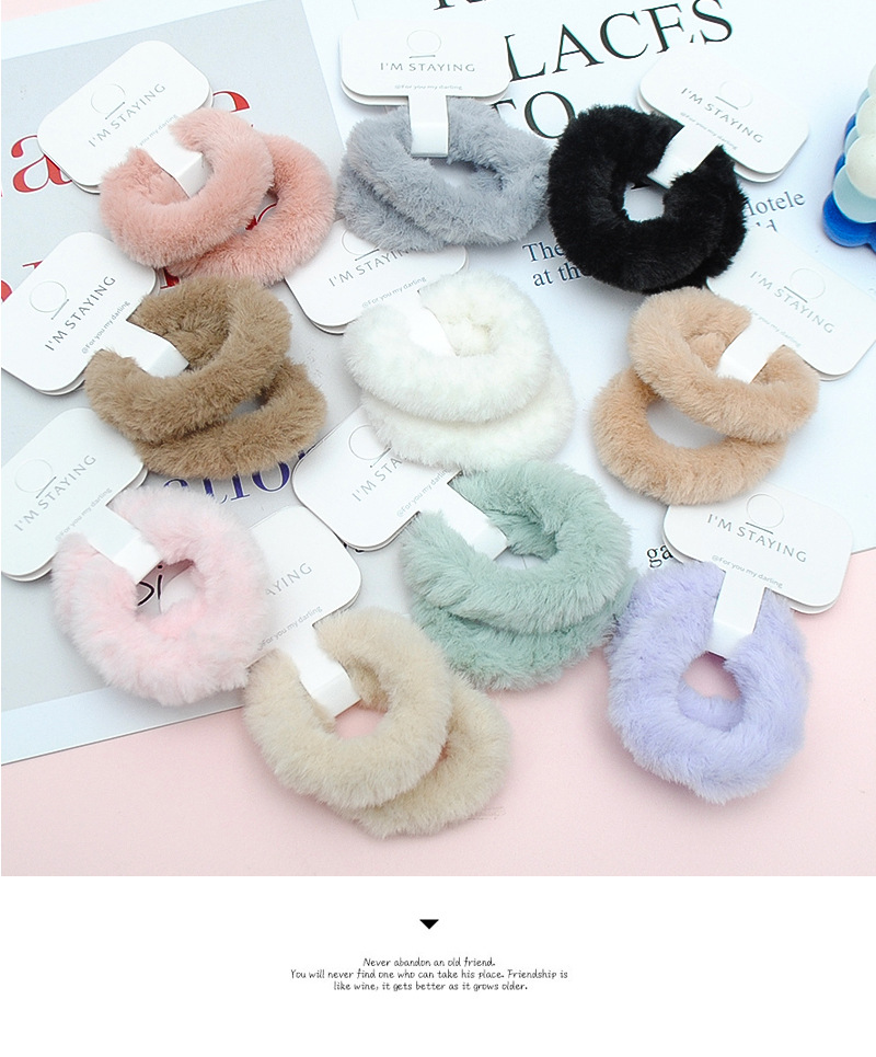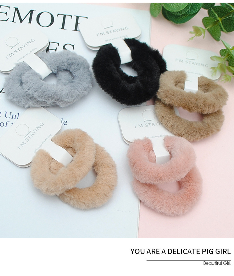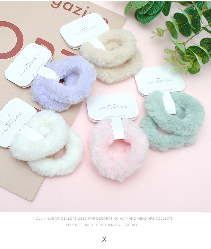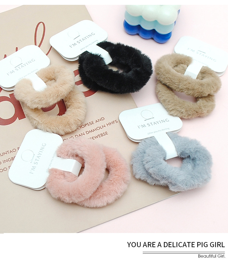 Manufacturers Wholesale Card-Loaded Leather Band Plush Towel Circle Hair Rope Sweet Girl Hair Band High Elastic High Ponytail Head Rope